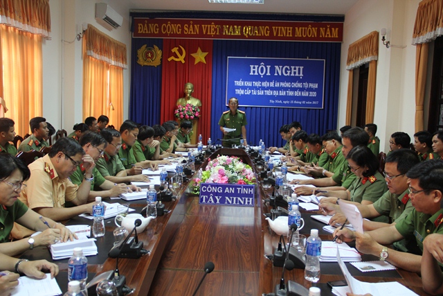 Ngày 16-2, Công an tỉnh Tây Ninh đã tổ chức Hội nghị triển khai kế hoạch thực hiện đề án phòng, chống tội phạm trộm cắp tài sản năm 2017. Quy chế thực hiện Đề án phòng chống tội phạm trộm cắp tài sản giai đoạn 2 (2017-2020).
