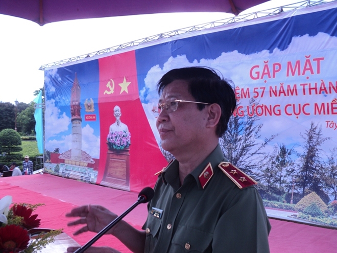| Trung tướng Nguyễn Văn Sơn phát biểu chỉ đạo tại buổi gặp mặt |