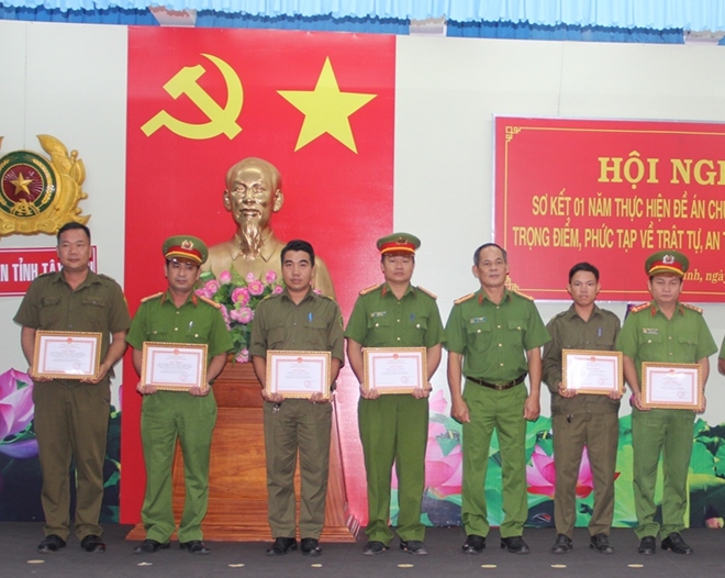 Nhân dịp này, Công an tỉnh Tây Ninh đã trao tặng giấy khen cho 27 tập thể, cá nhân, vì có thành tích xuất sắc trong công tác đấu tranh, phòng chống tội phạm, góp phần chuyển hoá địa bàn trọng điểm, phức tạp về ANTT.