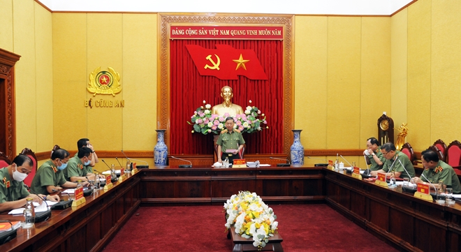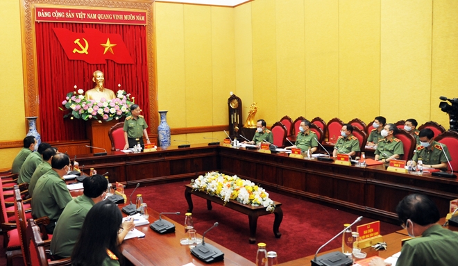 | Bộ trưởng Tô Lâm phát biểu chỉ đạo tại buổi làm việc. |