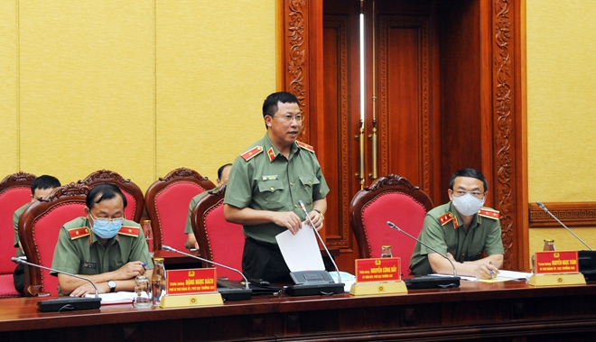 | Trung tướng Mai Văn Hà, Cục trưởng Cục Truyền thông CAND chia sẻ tại buổi làm việc. |