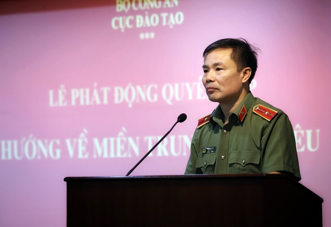 | Thiếu tướng Phó Giáo sư, tiến sĩ Đỗ Anh Tuấn, Cục trưởng Cục Đào tạo phát biểu tại buổi lễ phát động. |