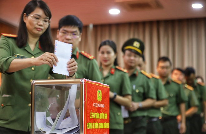 | Thiếu tướng Đỗ Anh Tuấn cùng CBCS Cục Đào tạo ủng hộ. |