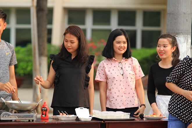 | Các nữ sinh viên An ninh trổ tài nấu ăn tại gian hàng ẩm thực |