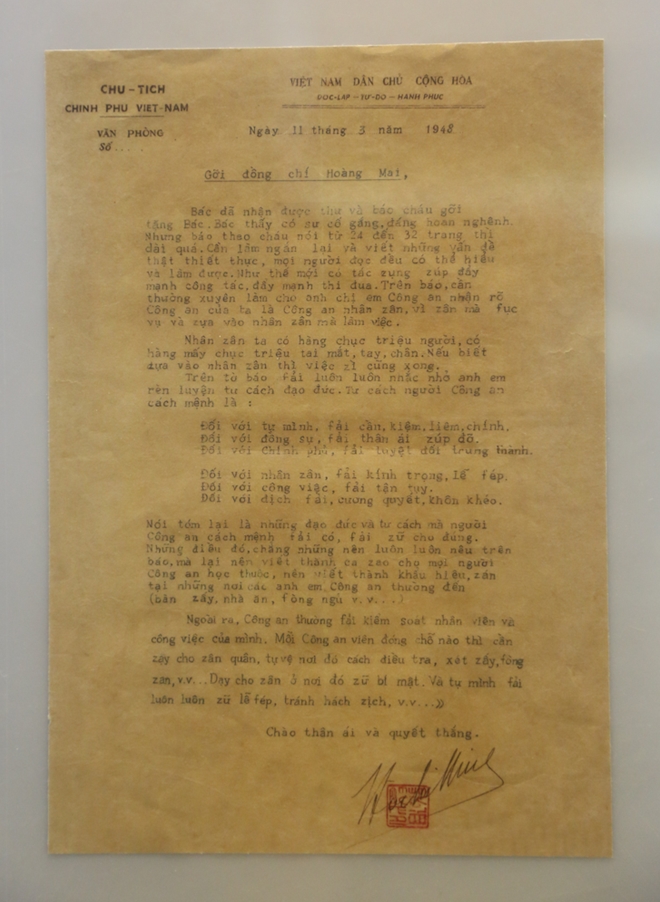 | Những bút tích quý của Chủ tịch Hồ Chí Minh trong các bức thư, văn bản giao nhiệm vụ cho lực lượng CAND. |