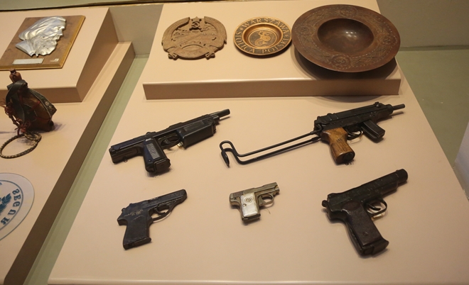 | Tại Bảo tàng CAND có trưng bày những hiện vật quý giá trong suốt chiều dài thành lập và phát triển cửa lực lượng Công an. Trong ảnh là một số sản phẩm do Công an xưởng Nam Bộ sản xuất phục vụ chiến đấu trong thời kỳ kháng chiến chống Pháp. |