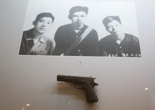 | Hình ảnh khẩu súng ngắn do đồng chí Trần Bình, Điệp báo Ty Công an Hà Nội sử dụng trong thời kỳ kháng chiến chống Pháp. |