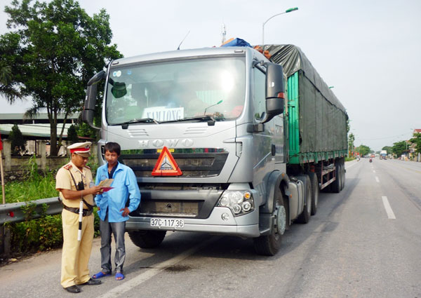 | CSGT Hải Dương kiểm tra phương tiện lưu thông trên QL18. |