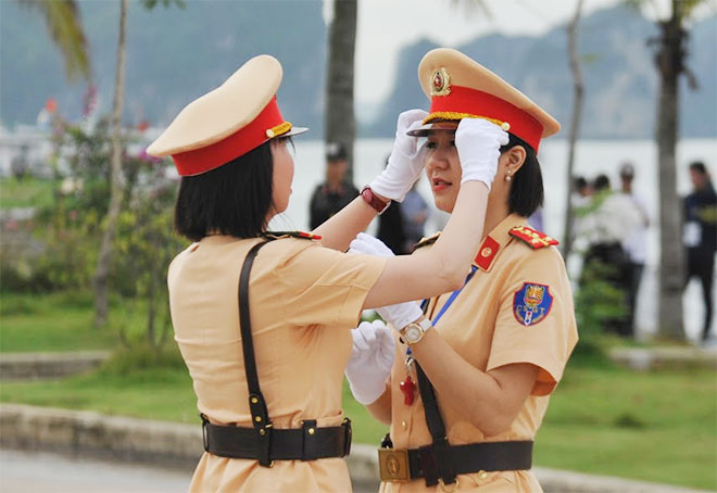 Một số hình ảnh nữ CSGT làm nhiệm vụ phục vụ đối thoại chính sách du lịch bền vững năm APEC 2017: