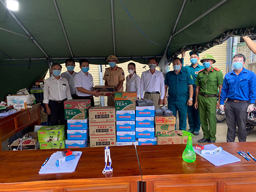 | Chốt kiểm soát ở thị xã Tân Uyên tiếp nhận sự ủng hộ từ các đơn vị. |