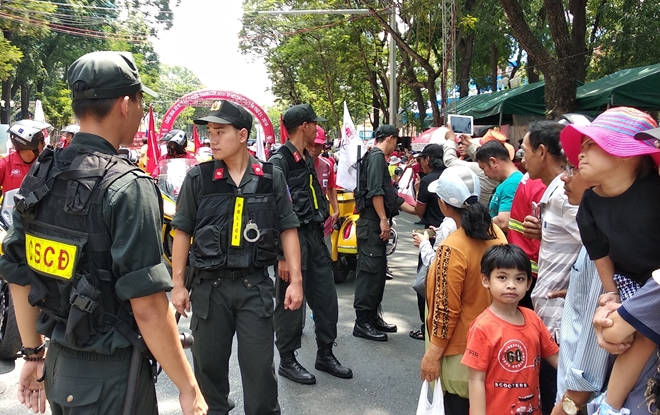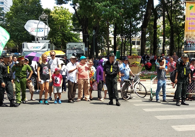 Với lượng người đổ dồn về các khu vực này đông nên ngay từ chiều 30-4, hàng trăm cán bộ chiến sĩ thuộc các lực lượng thuộc Công an TP Hồ Chí Minh đã ra quân để đảm bảo an ninh trật tự cho người dân được an toàn, thoải mái, vui chơi.