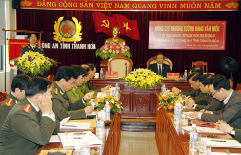 | Thứ trưởng Thường trực Đặng Văn Hiếu phát biểu tại buổi làm việc với Công an tỉnh Thanh Hoá. |