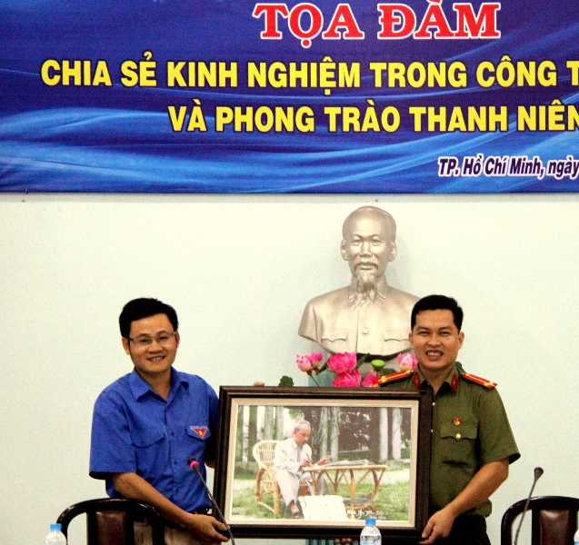 | Tuổi trẻ hai đơn vị trao tặng ảnh lưu niệm |