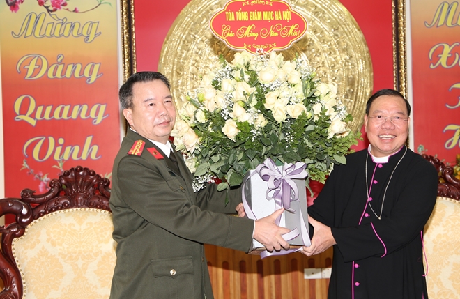 | Tổng Giáo mục Giáo phận Hà Nội Vũ Văn Thiên thăm, chúc Tết Công an Hà Nam |