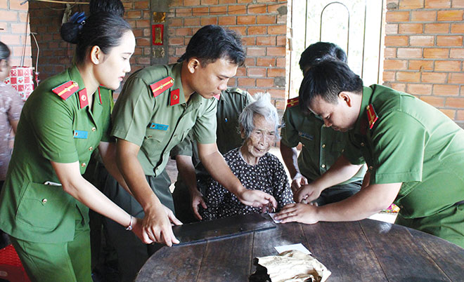 | Cán bộ Công an dành cả ngày nghỉ để giải quyết thủ tục hành chính cho người dân. |
