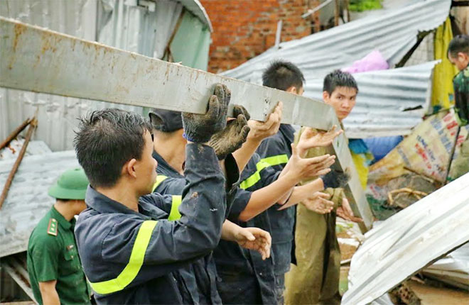 - Cảnh sát cơ động giúp dân khắc phục hậu quả thiên tai ở Nha Trang