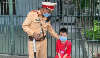 Cảnh sát giao thông đưa cháu bé 7 tuổi đi lạc về với mẹ
