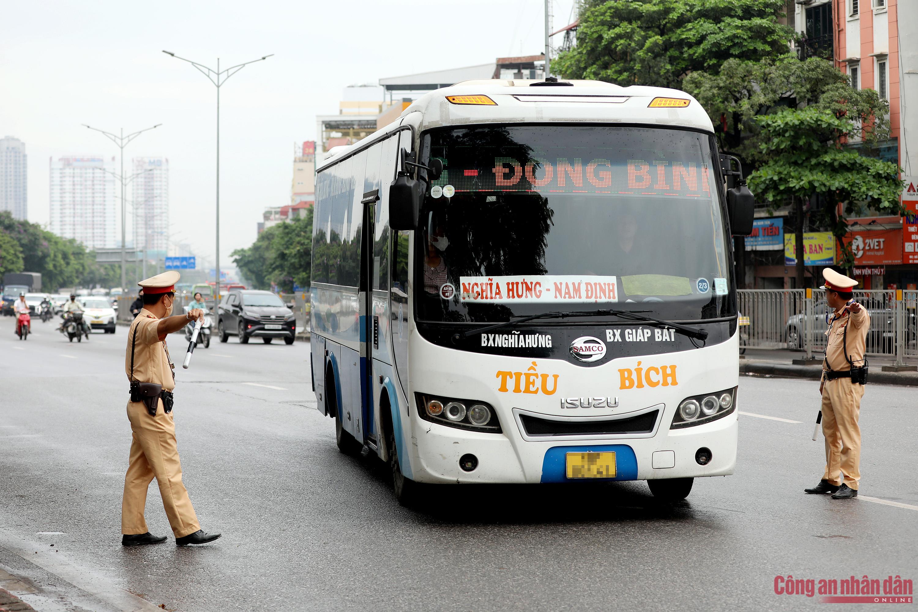 Sáng 24/4, Đội CSGT số 14 (Phòng CSGT Công an Hà Nội) triển khai nhiều tổ công tác với nhiệm vụ tuần tra kiểm soát địa bàn, đặc biệt là tại khu vực xung quanh hai bến xe khách Giáp Bát và Nước Ngầm để kịp thời phát hiện, xử lý xe khách vi phạm hoạt động không đúng quy định, dừng đỗ đón trả khách một cách tùy tiện gây ảnh hưởng đến TTATGT.
