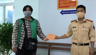Cảnh sát giao thông trao trả tiền đánh rơi cho người dân