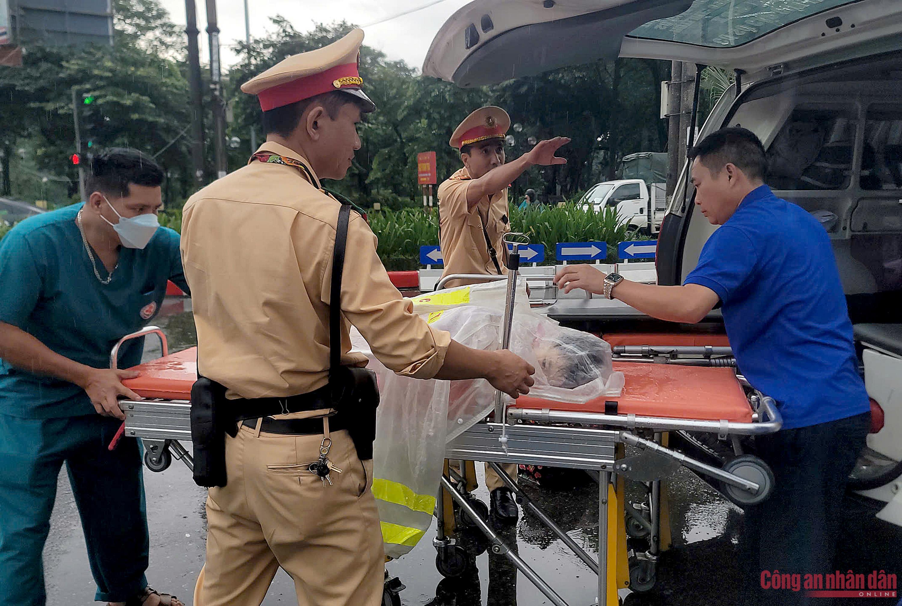 Vượt điểm ngập sâu, CSGT Hà Nội đưa hai bệnh nhi đi cấp cứu