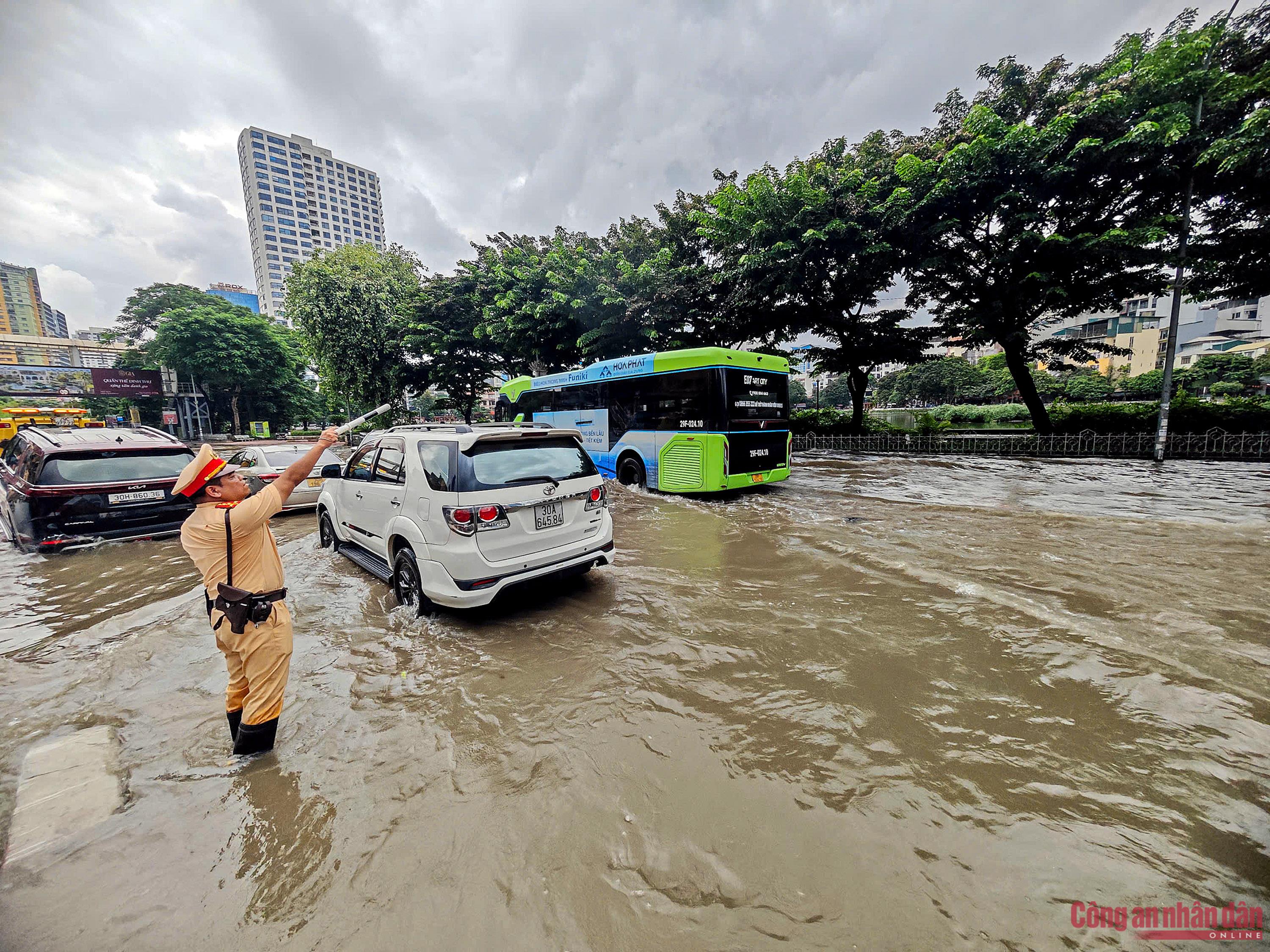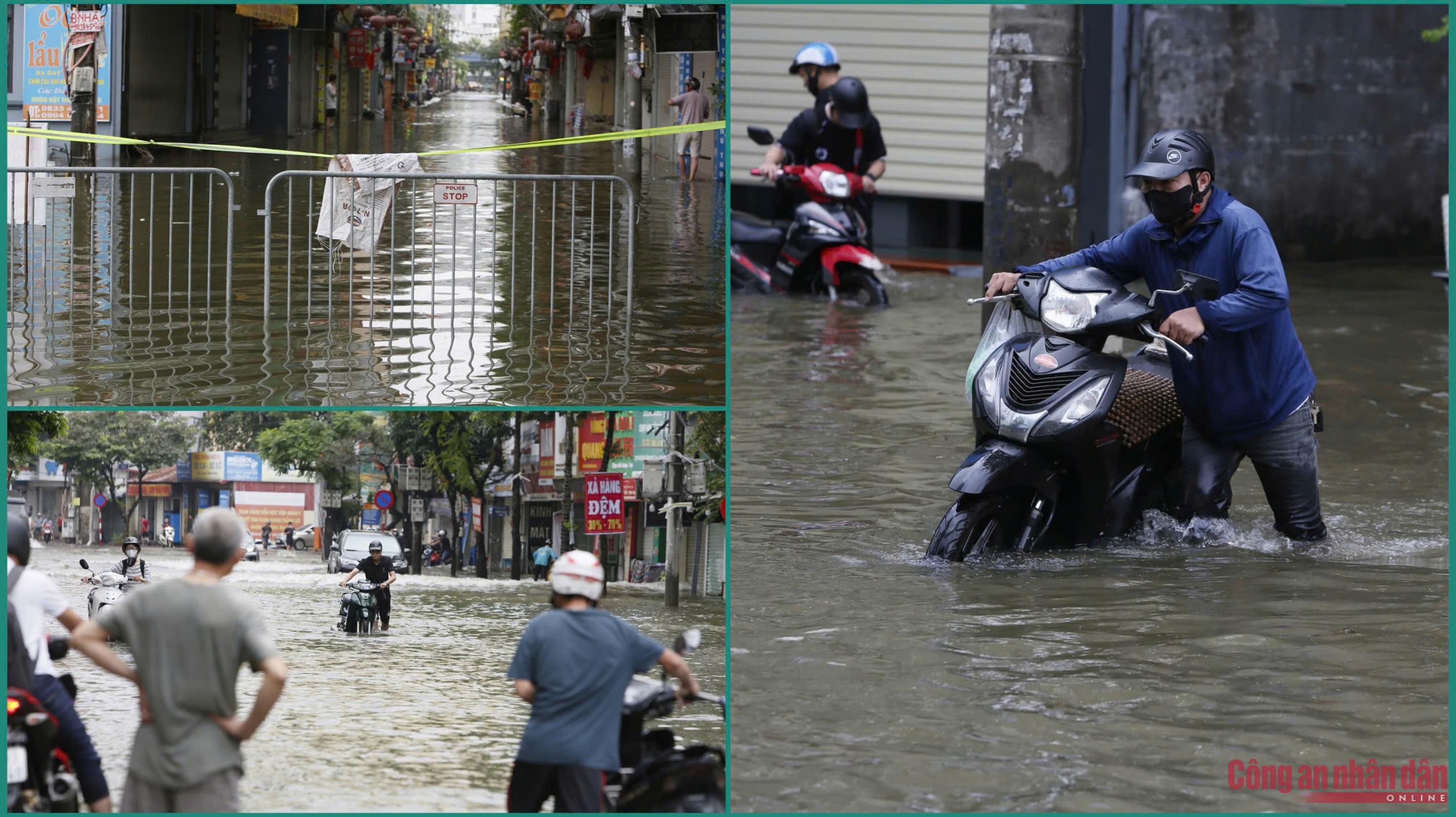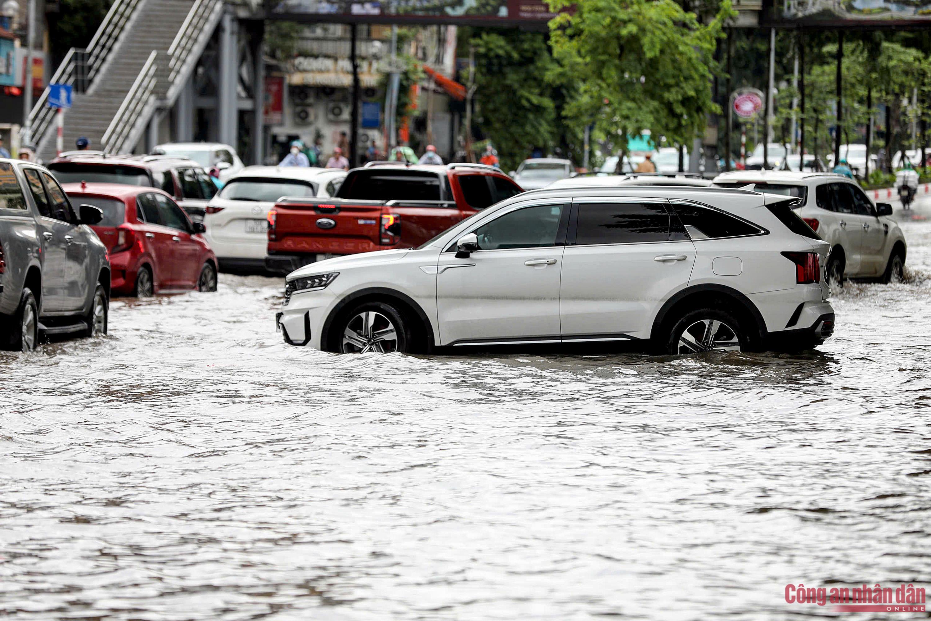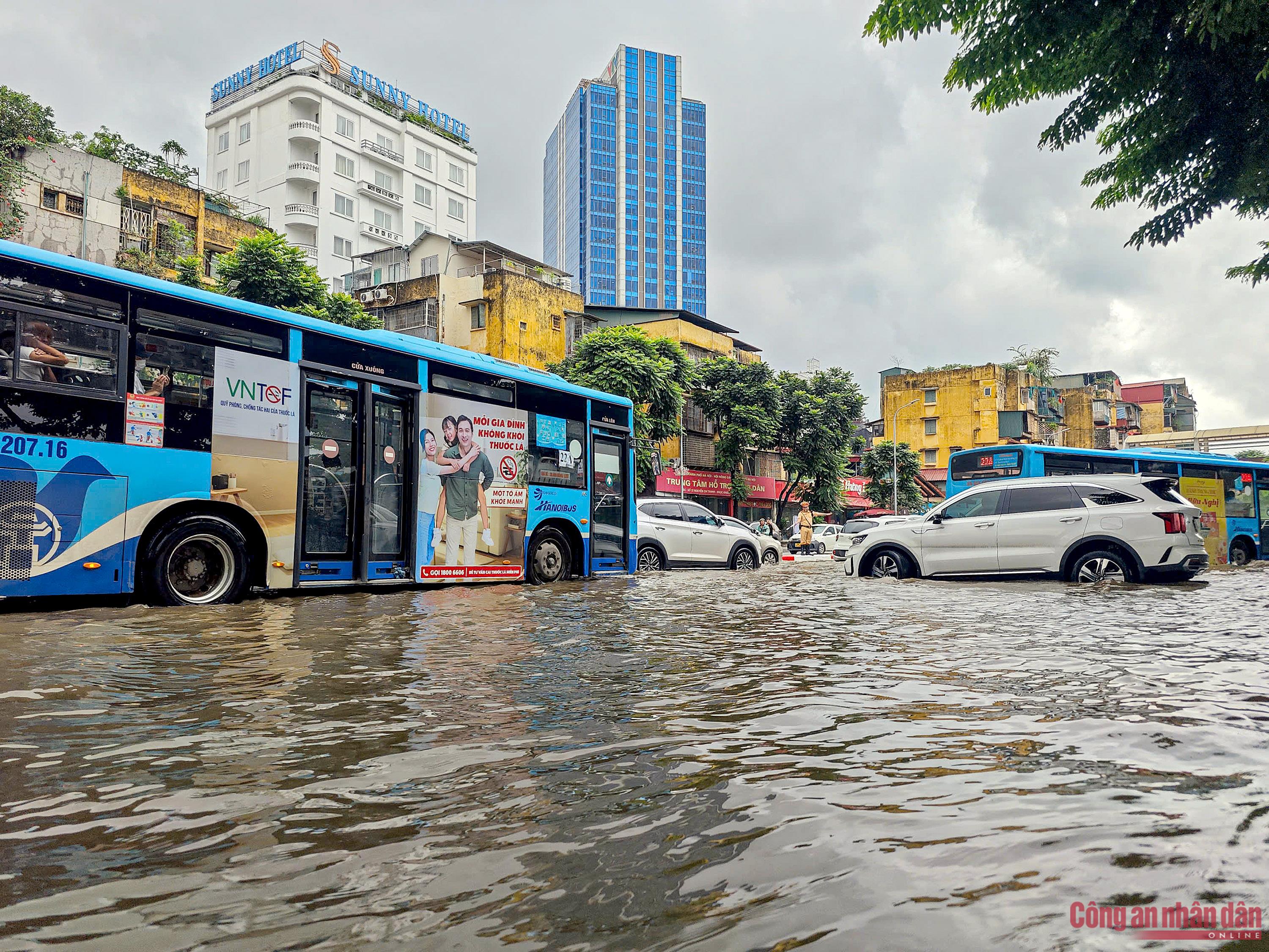 Mưa xối xả trút nước nhấn chìm nhiều tuyến phố Hà Nội