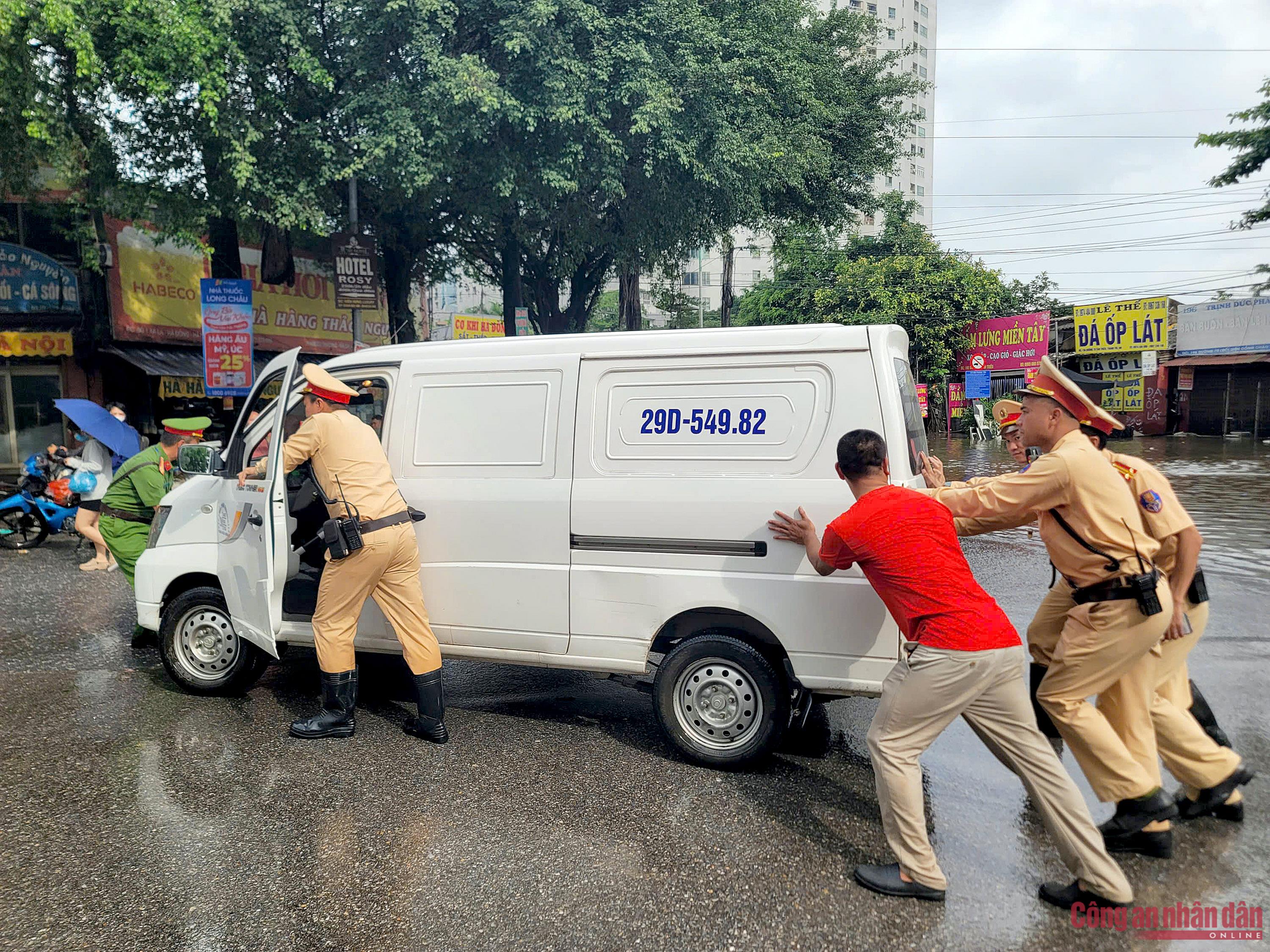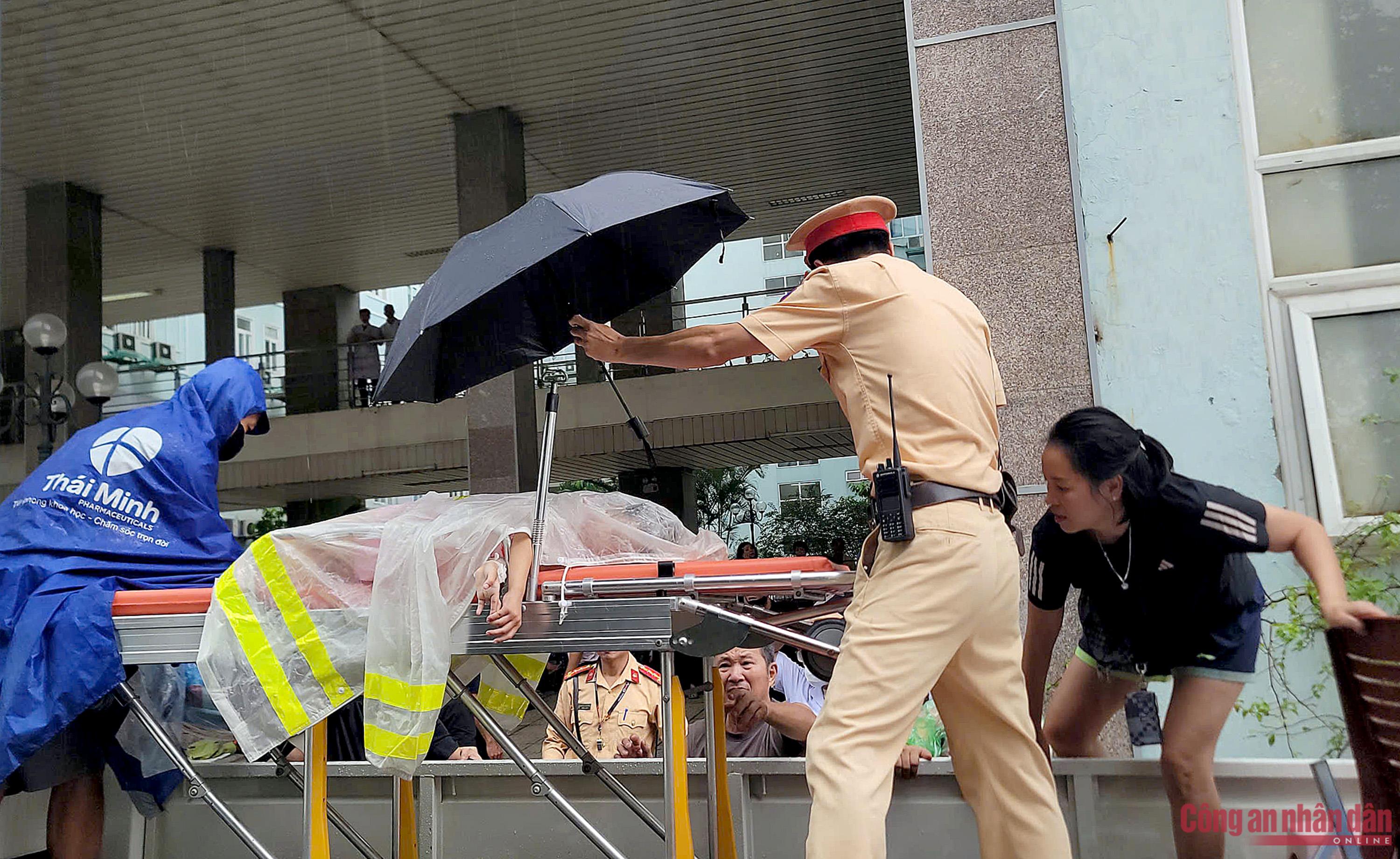 Nhiều tuyến đường tại Hà Nội trong sáng nay (1/10) vẫn tiếp tục ngập sâu, gây khó khăn cho việc đi lại. Lực lượng CSGT trong quá trình làm nhiệm vụ đã liên tục hỗ trợ, giúp đỡ người dân trong đó có trường hợp đưa hai bệnh nhi bị thiếu máu nặng và sốc nhiễm khuẩn ra khỏi vùng ngập đi cấp cứu tại Bệnh viện Việt Đức và Bệnh viện Bệnh Nhiệt đới Trung ương.