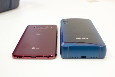 | Cũng vì mang viên pin lớn nên thiết kế của Energizer Power Max P18K Pop có phần khá “vạm vỡ” khi dày đến 18mm, khoảng 3 chiếc Galaxy S10 chồng lên nhau. |