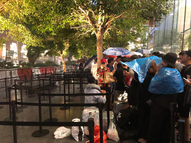 Hình ảnh được PV của tờ Straitstimes ghi lại vào chiều ngày 20-9, tức là chỉ còn cách thời điểm mở bán chính thức iPhone Xs và Xs Mã không lâu. Dòng người xếp hàng chờ mua iPhone đã ken đặc khu vực vỉa hè phía trước Apple Store.