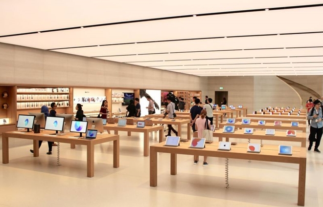 Phía bên trong cửa hàng Apple Store, nơi sẽ diễn ra việc mở bán iPhone Xs và Xs Max