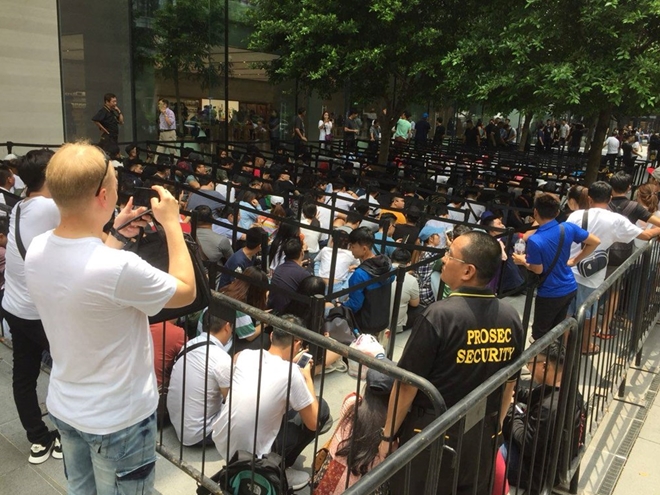 Mặc dù có rất đông người tới chờ đợi mua iPhone nhưng tình hình an ninh tại Apple Store tương đối trật tự, không có cảnh chen lấn, mọi người đều cố gắng chờ đợi theo thứ tự. Khá nhiều trong này là các nhóm bạn cùng nhau đi mua iPhone nên tranh thủ trò chuyện với nhau.