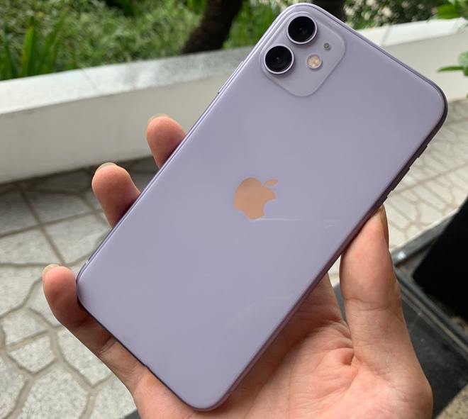 | Mẫu iPhone 11 với dung lượng bộ nhớ trong 256GB và đi kèm mặt lưng màu tím nhạt. |