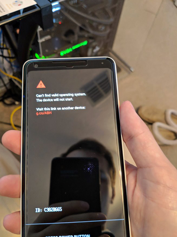 Theo đó, ngày hôm qua, một thành viên trên diễn đàn Reddit chia sẻ thông tin cùng hình ảnh về chiếc Google Pixel 2 XL mới mua nhưng không thể hoạt động được. Khi chủ nhân chiếc máy tiến hành khởi động thì xuất hiện cảnh báo lỗi cùng dòng chữ “Can’t find valid operating system. The device will not start.”, điều này đồng nghĩa với việc các kỹ thuật viên của Google đã vô tình quên cài hệ điều hành cho chiếc máy trước khi bán ra cho khách hàng.