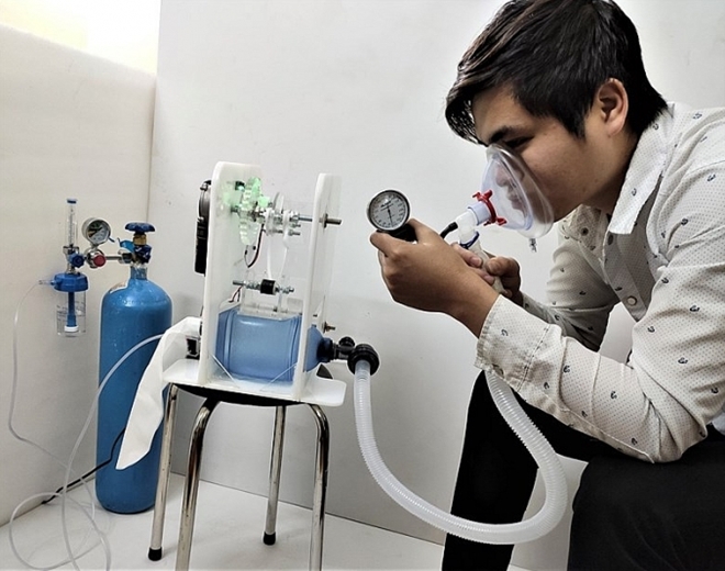 | Máy hỗ trợ thở do Khoa Điện tử Viễn thông và Trung tâm nghiên cứu phát triển trường Đại học Điện Lực nghiên cứu, chế tạo. |