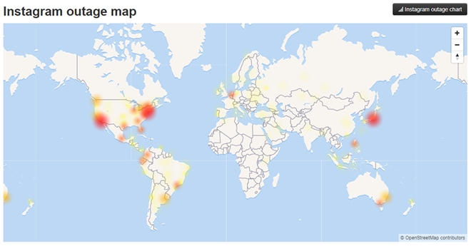 | Cảnh báo lỗi Instagram trên chuyên trang báo lỗi Downdetector. |