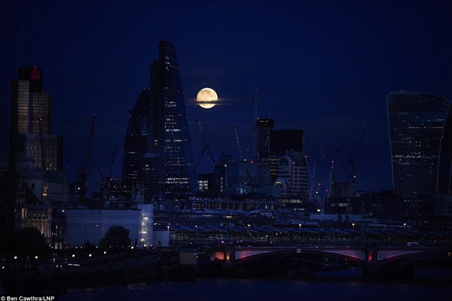 | Siêu trăng tỏa sáng trên bầu trời trung tâm London. Các nhà thiên văn Anh cho hay trong đêm nay (14-11), mọi người vẫn có thể chứng kiến siêu trăng xuất hiện tại Gazers phía đông nam nước này. Ảnh: LNP. |