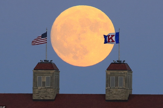 | Siêu trăng trên bầu trời đại học Kansas tại Lawrence, bang Kansas, Mỹ. Ảnh: AP. |