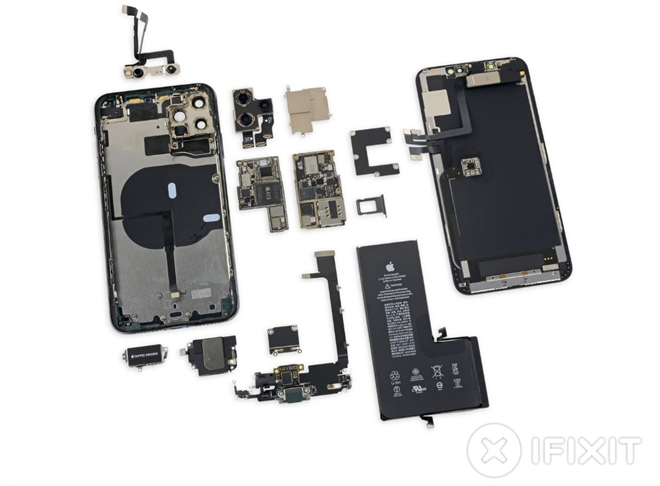 | Toàn bộ linh kiện bên trong của "khủng long" iPhone 11 Pro Max. Cuối cùng, iFixit chấm 6/10 điểm cho khả năng sửa chữa của iPhone 11 Pro Max. |