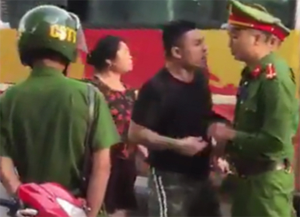 Trong đoạn video, nam thanh niên còn có thái độ hung hăng, đôi co, đối tượng này còn sử dụng không ít lời lẽ thách thức như “mày đánh tao đi”, “bác tao là Trưởng Công an thành phố…” và còn liên tiếp thực hiện nhiều hành vi xô đẩy, chỉ tay vào mặt nhằm khiêu khích các chiến sĩ Công an.