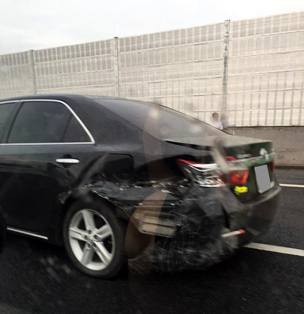 | Chiếc Camry gặp nạn. Ảnh: Minh Quân |
