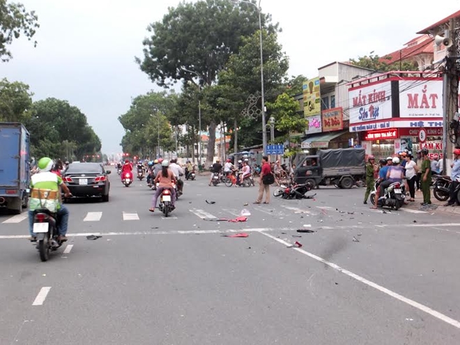 Vụ tai nạn làm một cô gái tử vong tại chổ. Xe mô tô bị hư hỏng nặng sau tai nạn.