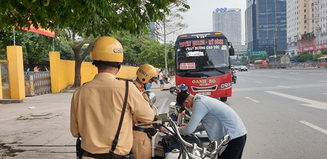 Chiều 30/4, tại đường Phạm Hùng thuộc địa bàn quận Cầu Giấy (TP Hà Nội) hướng Bến xe Mỹ Đình đi Cầu Thăng Long, tổ công tác gồm Thiếu tá Nguyễn Minh Tuấn, Thượng uý Nguyễn Mạnh Tuấn, Trung uý Phạm Văn Đức và Thiếu uý Đào Ngọc Hùng thuộc Đội CSGT số 6 (Phòng CSGT Công an TP Hà Nội) tiến hành kiểm tra xử lý theo chuyên đề đối với ô tô chở khách tại bến xe Mỹ Đình vi phạm các lỗi như chạy “rùa bò”, dừng, đỗ đón trả khách không đúng nơi qui định gây cản trở giao thông.