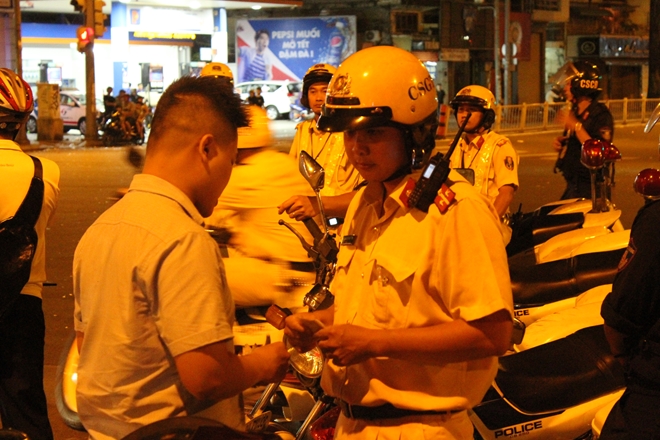 Đến sau thời gian 23h, lực lượng CSGT đã phát loa nhắc nhở người dân nên giải tán nhằm tránh gây bớt tiếng ồn và giữ trật tự công cộng. Nhiều người dân chấp hành quy định của lực lượng chức năng, nhưng một bộ phận thanh thiếu niên khác vẫn bỏ qua lời nhắc nhở của lực lượng chức năng, tiếp tục chạy vòng quanh các tuyến đường, thổi kèn, nẹt pô xe in ỏi, chạy nhanh, lạng lách, chạy xe thành đoàn “đi bão” gây mất trật tự công công. Trước tình hình, lực lượng CSGT cùng lực lượng CSCĐ buộc phải trấn áp, xử lý vi phạm trên.