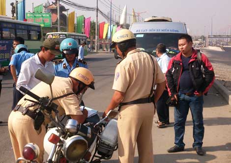 | Một xe khách bị kiểm tra vì chở quá số người qui định. |