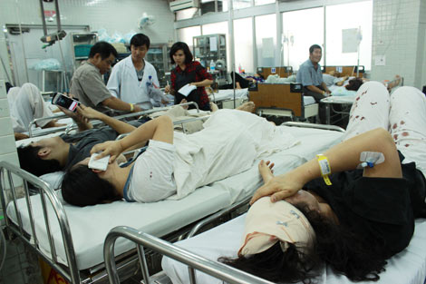Theo Bác sĩ Ngô Lê Đại, Trưởng kíp trực Khoa cấp cứu Bệnh viện Chợ Rẫy cho biết, 3 bệnh nhân bị chấn thương vùng đầu đã được thực hiện chụp Citi - Scan kiểm tra và theo dõi sang thương vùng đầu.