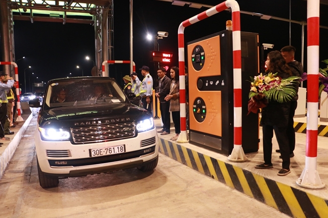 | Lái xe được các nhân viên hướng dẫn lấy thẻ khi qua trạm thu phí |