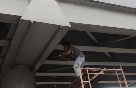 | Hình ảnh kiểm tra cầu vượt thép Lăng Cha Cả sau sự cố. |