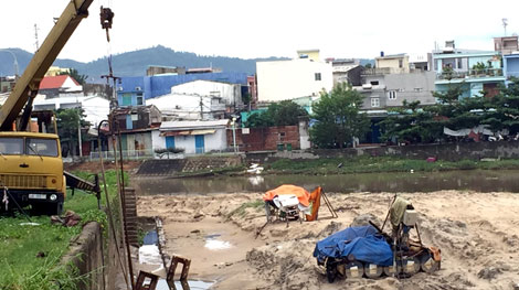 | Dự án “đậy nắp” cửa sông Phú Lộc đang tạm dừng. |