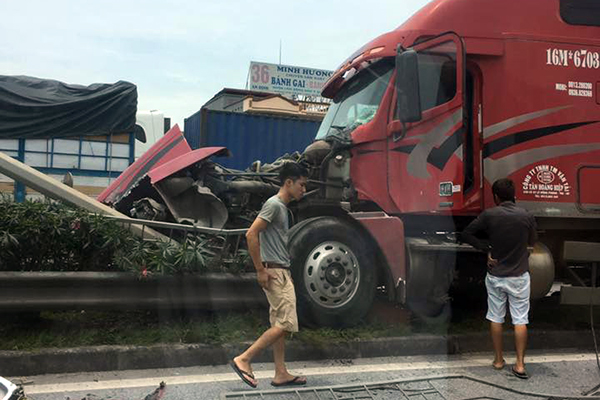 Theo người dân cho biết, xe container mang BKS: 16M-6703 đang lưu thông theo hướng đi Hải Phòng thì bất ngờ mất lái, lao sang bên trái cày nát dải phân cách cứng giữa đường và húc đổ một cột đèn chiếu sáng. Va chạm khiến đầu xe container bị hư hỏng nặng nhưng rất may tài xế chỉ bị thương nhẹ.