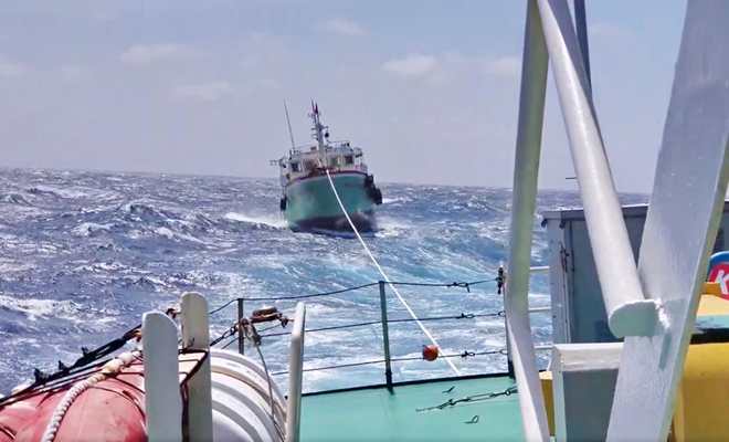 Dù đã nỗ lực sửa chữa nhưng bất thành nên hai tàu cá bị sóng gió xô dạt trên biển, cách đảo Phú Quý (Bình Thuận) về hướng Đông Nam 56 hải lý.