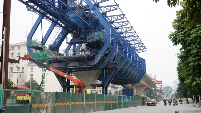 | Đây là dự án đường trên cao đầu tiên ở Hà Nội sử dụng công nghệ thi công cầu bê tông cốt thép trên đà giáo di động. Nhà thầu sẽ đổ dầm trực tiếp, thay vì phải di chuyển từ nơi khác tới. |